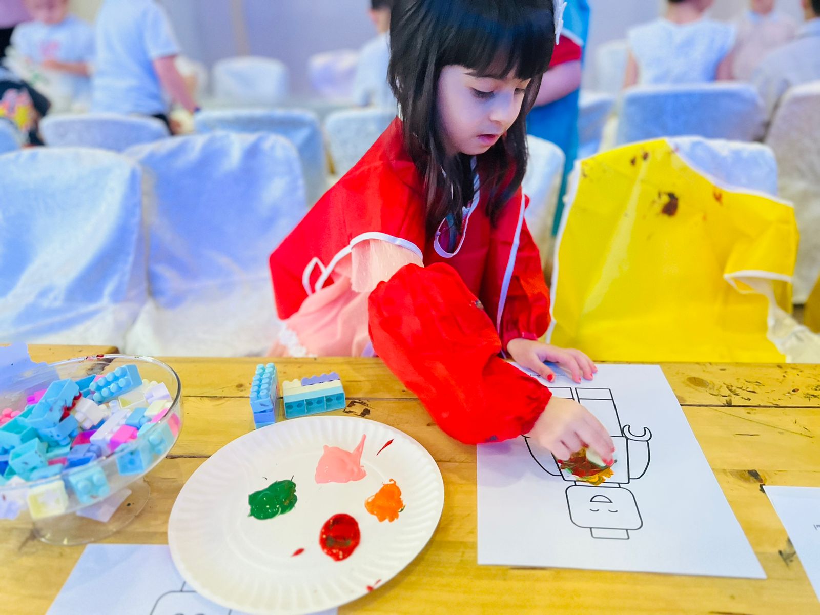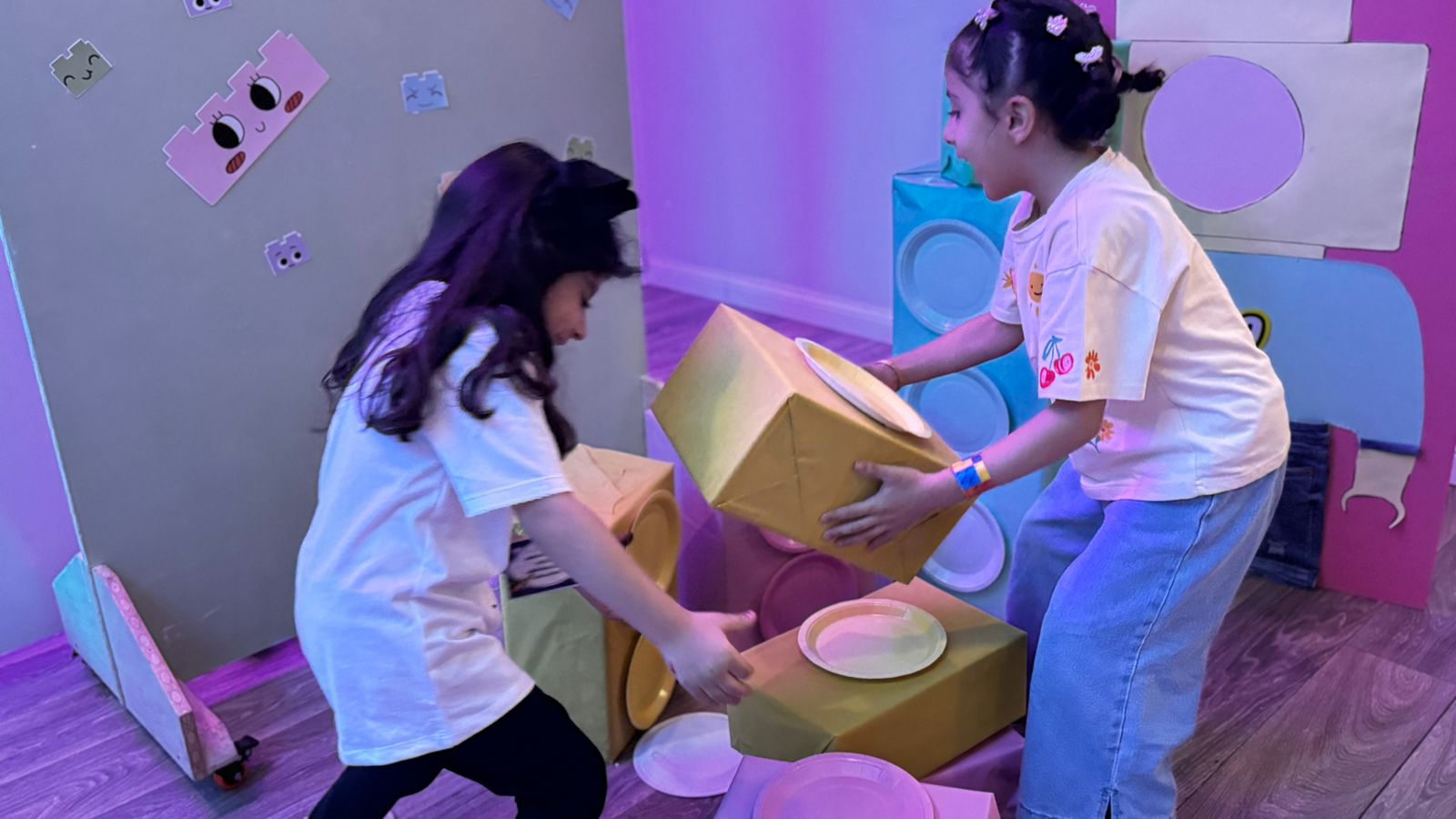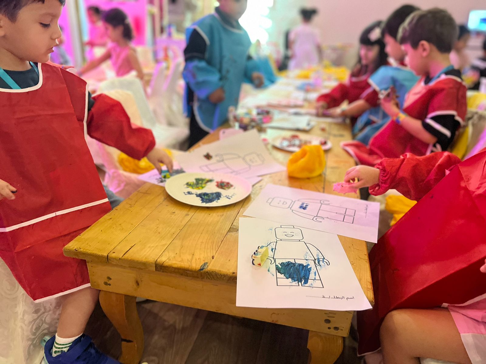 تعلّم الأطفال خلال البرنامج مطابقة الأشكال والألوان، وممارسة الطباعة اليدوية، كما أبدع الأطفال بتصميم شخصيات باستخدام الملصقات .