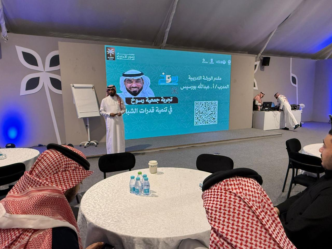 نفذت جمعية رسوخ ورشة تدريبية بعنوان “تجربة جمعية رسوخ في تنمية قدرات الشباب” بالتعاون مع أمانة الأحساء، بهدف تسليط الضوء على الممارسات والتجارب النوعية في تمكين الشباب، وتعزيز مهاراتهم الشخصية والمهنية، واستعراض البرامج والمبادرات التي تسهم في بناء قدراتهم ورفع جاهزيتهم لسوق العمل ، وجاءت الورشة ضمن فعاليات مهرجان تمور الأحساء المصنعة 2026، وقدّمها سعادة الأستاذ عبدالله بن خالد بورسيس المدير التنفيذي للجمعية، حيث تناول خلالها تجربة الجمعية في تصميم البرامج التنموية، وأثرها في دعم الطاقات الشابة، إضافة إلى مناقشة سبل تطوير المبادرات المجتمعية المستدامة.